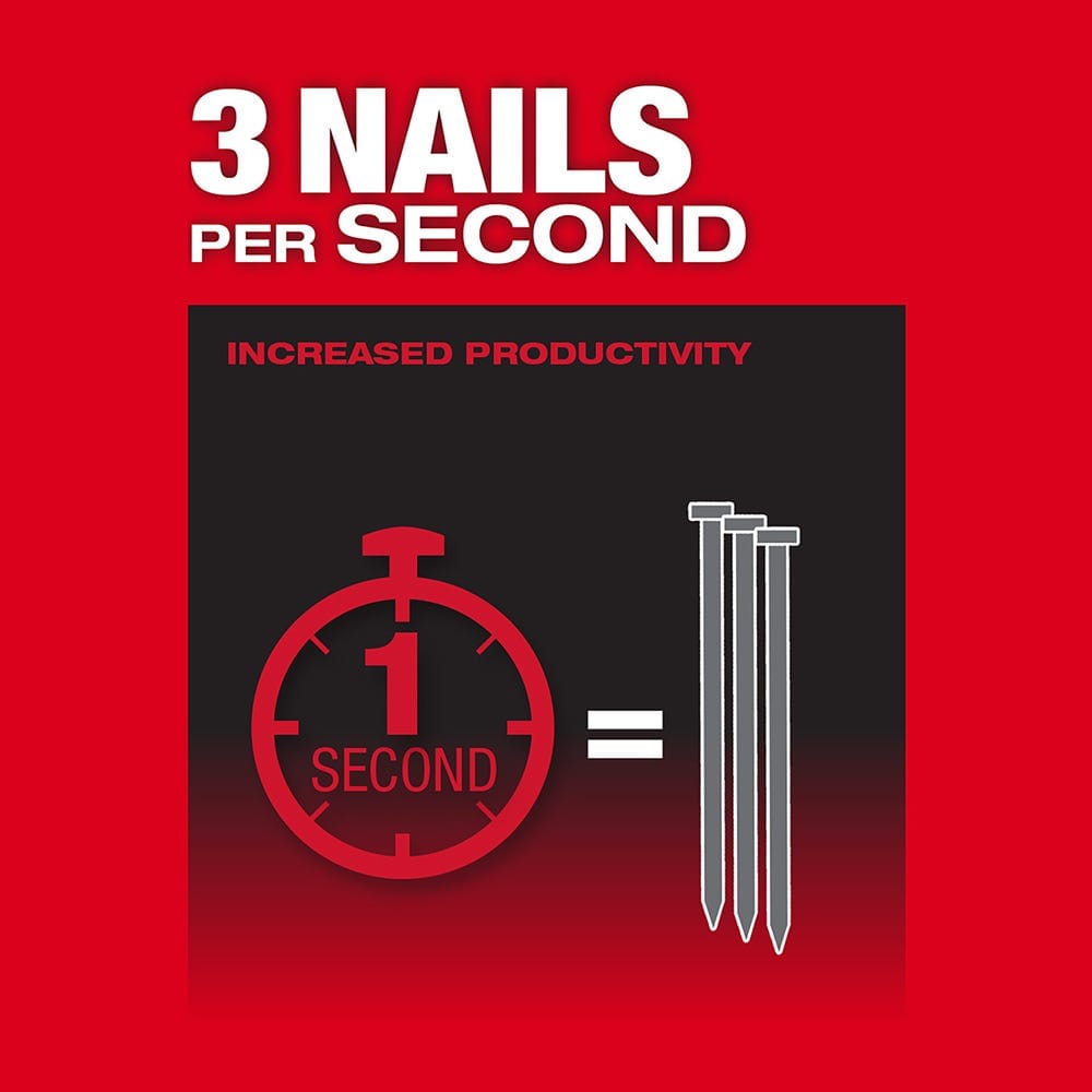 2745-20 M18 FUEL Brushless 30-Degree Framing Nailer, Tool OnlyThe New StandardThe 2745M18 FUEL 30 Degree Framing Nailer sets the new standard for cordless framing nailers. By leveraging our nitrogen spring mechanism, POWERSTATE brushless motor, and REDLINK Intelligence, this nailer provides you with pneumatic performance and the convenience and freedom of cordless power.3 Nails per SecondDelivering the power to sink full round head nails into dense engineered lumbers, this framing nailer allows you to tackle even the most demanding framing applications. To keep you productive and efficient throughout the day, the framing gun fires 3 nails per second with zero ramp-up time, meaning a nail is fired as soon as you pull the trigger. Pneumatic PerformanceAdditionally, the cordless framing nailer operates using only our REDLITHIUM Batteries (not included) and sealed compressed nitrogen to drive each nail, completely eliminating the cost of gas cartridges and maintenance associated with competitors’ nailers. The M18 FUEL 30 Degree Framing Nailer delivers the pneumatic performance and durability that professional carpenters and remodelers expect, without the hassle of a compressor and hose or gas cartridge.Milwaukee 2744-20 M18 FUEL Brushless 21-Degree Framing Nailer, Tool Only Features: