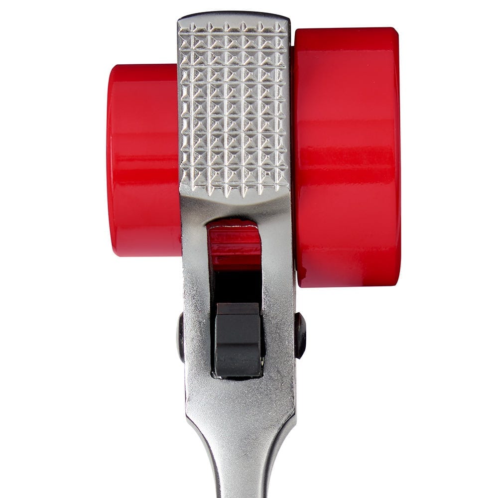 Most Durable Ratchet Durable Forged Steel for Longer Life Built-In Hammer The MILWAUKEE® Lineman’s 5in1 Ratcheting Wrench features the most durable ratchet. The ratcheting wrench has a built-in hammer providing a dedicated hammering surface and large directional switches that can be easily pressed while wearing gloves. It has a durable forged steel construction providing longer tool life. The High-Leverage wrench fits 3/4″, 1″, and 1-1/8″ square hardware and 9/16″ and 3/4″ standard hardware. Most Durable Ratchet Durable Forged Steel Built-In Hammer Large Directional Switches Ergonomic Design Lanyard Hole 5in1 3/4″, 1″, and 1-1/8 Square Sockets 9/16″ and 3/4″ Twelve Point Sockets